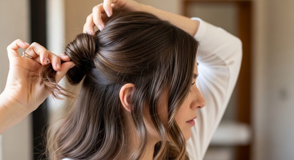 Then, use a hair tie or simply tuck the ends under and pin everything in place. This creates that perfect, rounded shape that looks professionally done and incredibly lush.