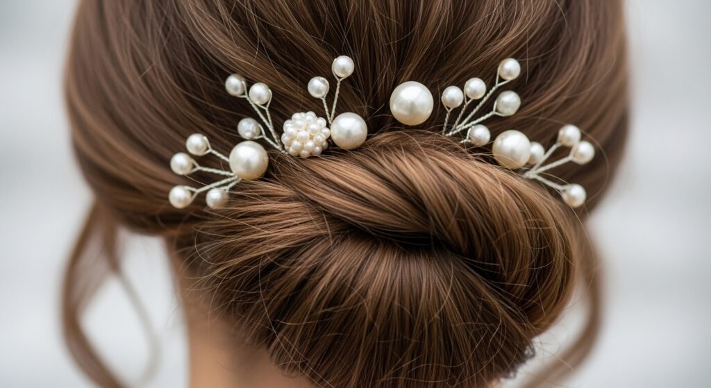 Pearls are having a major moment and they scream elegant tea party. After your updo is set, carefully insert a few pearl-tipped bobby pins. You can cluster them together or scatter them for a subtle sparkle.