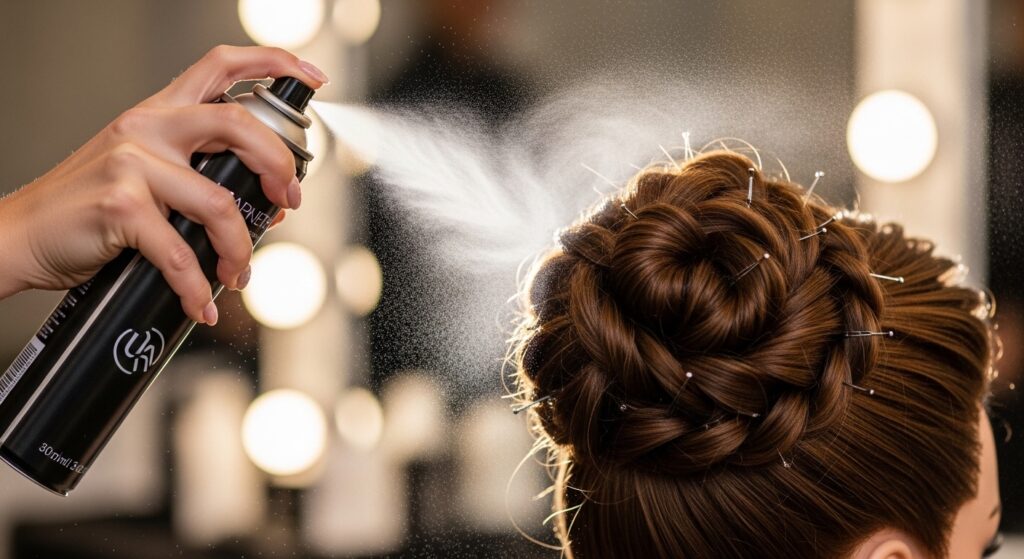 Use more pins than you think you need, always criss-crossing them for a stronger hold. A final, light mist of flexible-hold hairspray locks it all in without stiffness.