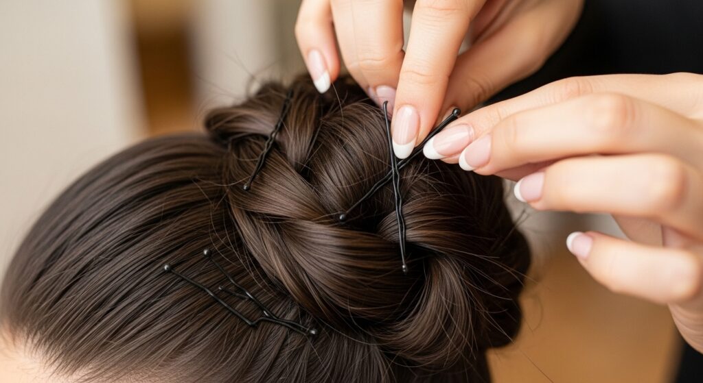 Pinning is the trickiest part, but here’s the secret: cross your bobby pins. Insert one pin going left, and the next pin going right. This creates a locking effect that holds far better than pins going the same direction.