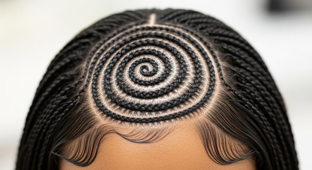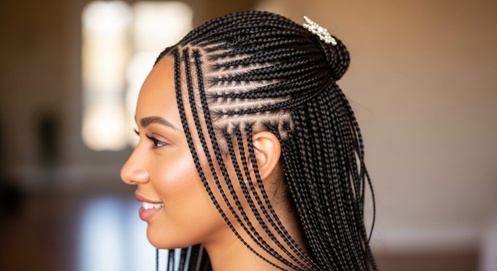 This is where the style truly shines. Pull your braids into a high bun to display the intricate work at the nape of your neck. A low, twisted bun can highlight beautiful patterns at the crown. Use U-pins or spin pins for a secure hold that’s gentle on the braids.