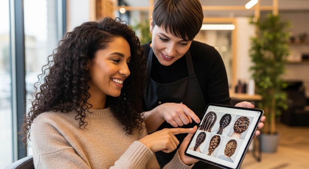 Come to your consultation with your saved photos. Be specific. Point out exactly what you love: “I love how small these braids are here,” or “I want this swirl pattern at my crown.” Discuss your hair’s health and density to ensure it can handle the style.