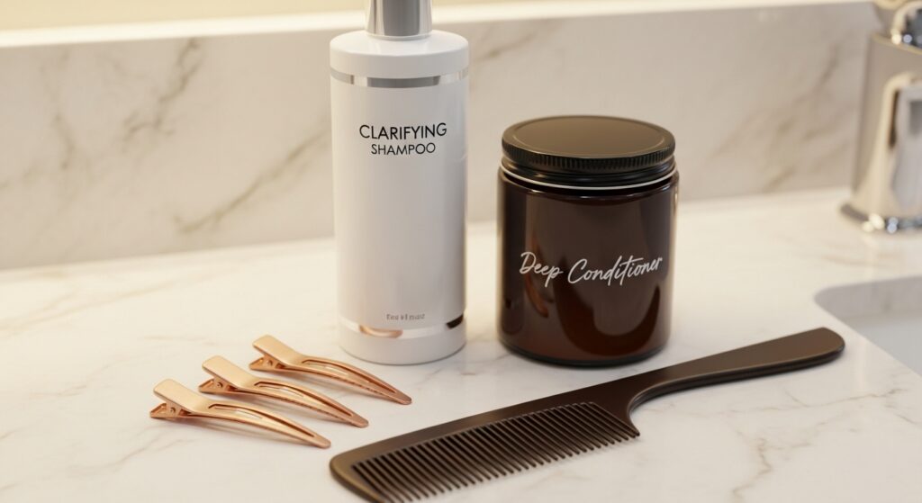 - Cleanse & Clarify: Wash your hair 1-2 days before with a clarifying shampoo to remove any buildup for a clean base.
