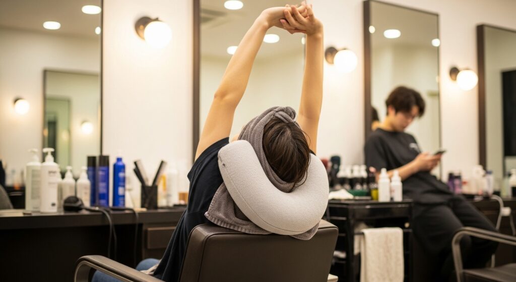 It’s normal to feel some soreness on your scalp, especially after hours of braiding. Take breaks to gently massage your scalp along your parts. Use a travel neck pillow for support. Stand up and stretch your back and shoulders periodically.