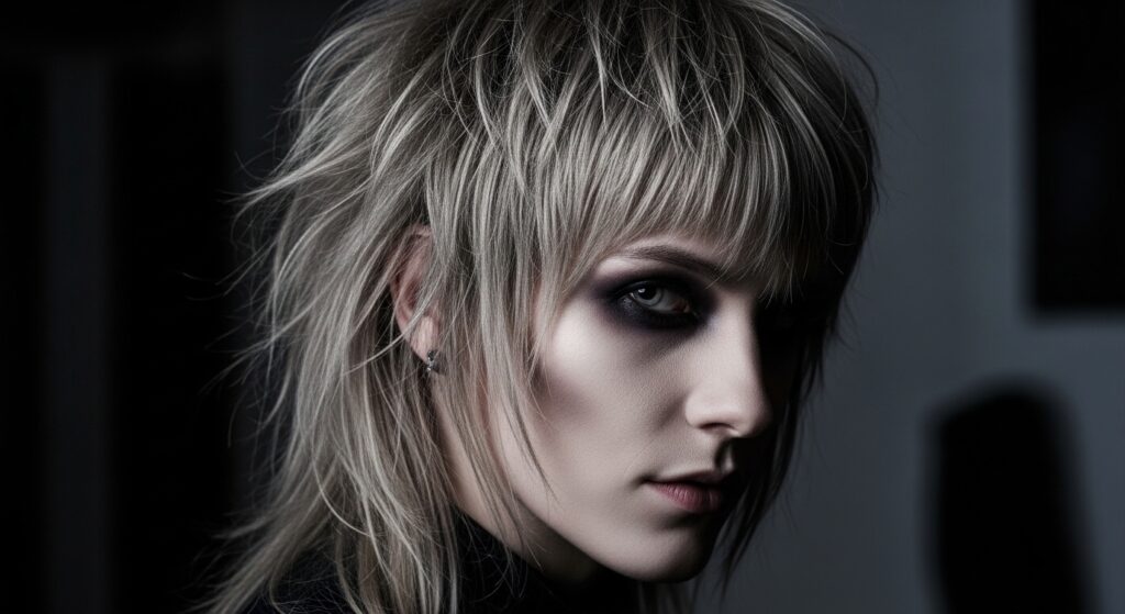 The modern vampire haircut is a textured mullet-meets-shag. Its entire attitude comes from choppy, piece-y layers and a ton of root movement. A strong-hold root spray is absolutely essential here.
