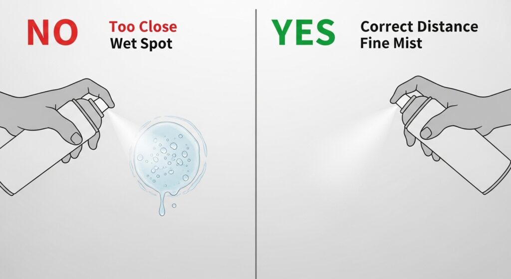 • Mistake: Spraying too close to the head. Fix: Always keep the can 6+ inches away for an even mist.