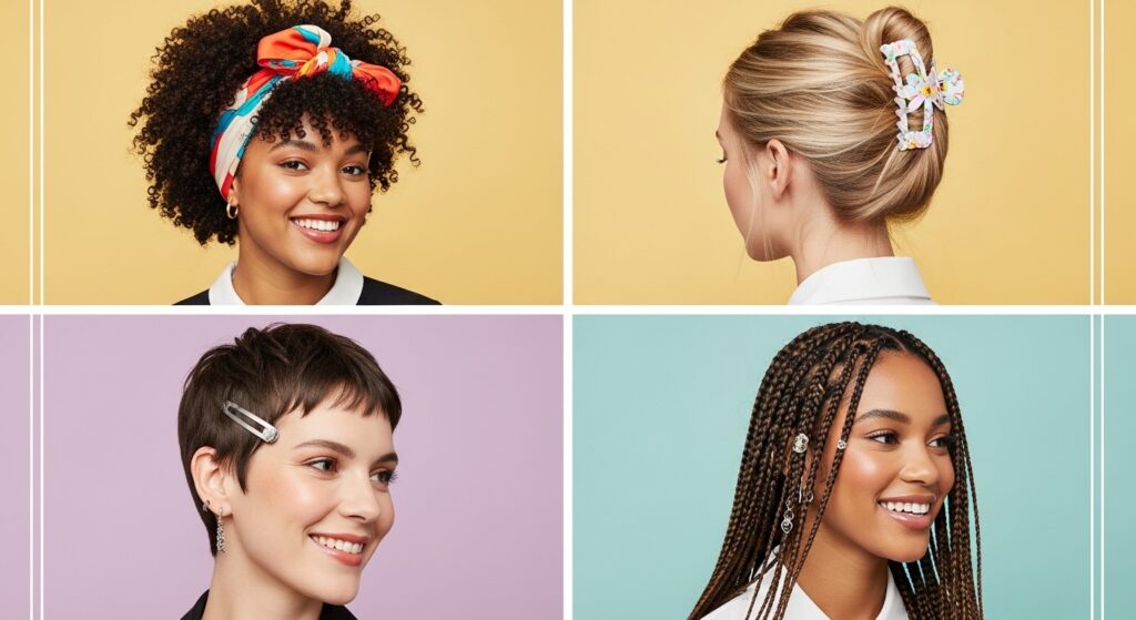 If there’s one surefire way to instantly tap into the playful hair vibe, it’s with accessories. Hair accessories have shed their utilitarian image and are now central to the trend as statement-making pieces. We’re not just talking about simple elastics anymore. The playground includes oversized claw clips, bejeweled barrettes, silk scarves, and whimsical charms that you can clip onto braids or ponytails.