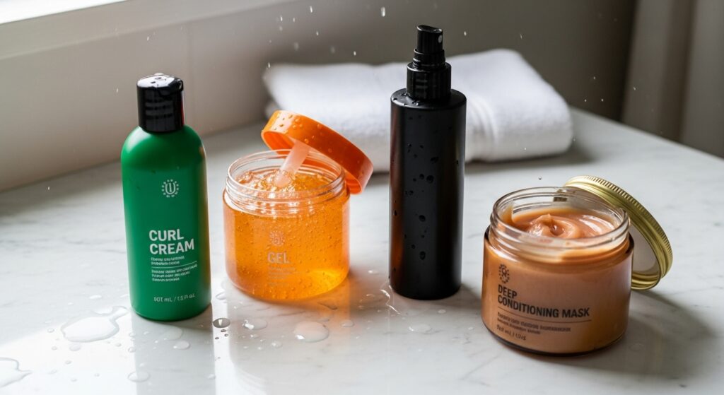 Curl Creams and Gels: The dynamic duo for style. Creams provide moisture and shape, while gels (especially those with a “hard cast”) lock in that shape and provide a flawless, frizz-free finish that scrunches out to soft, touchable curls.