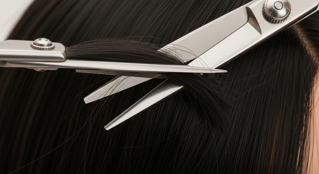 Even if your wig is one length, you can create the illusion of layers for movement. Take small, face-framing sections and point-cut into the ends with hair shears. This means cutting vertically into the hair, not straight across.