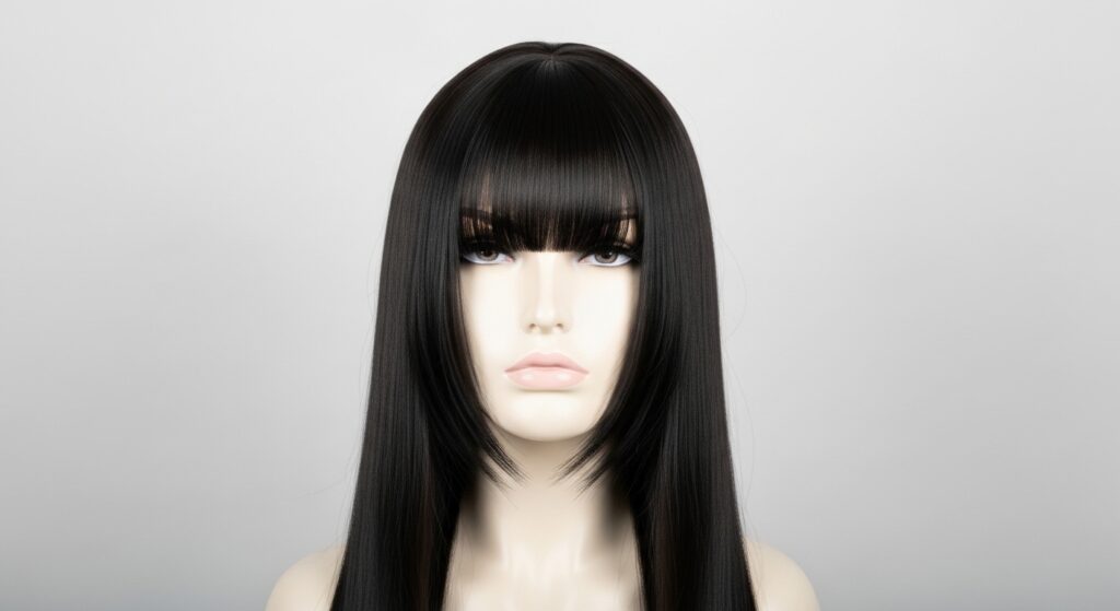The hime cut is beautifully structured. The blunt, straight-across fringe and sharp, straight lengths require a wig with excellent density. Use a flat iron on high heat (for heat-friendly fiber) to get it razor-straight.