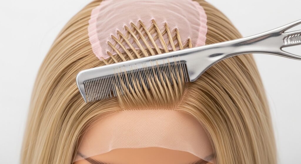 A stiff, straight part is a sure sign of a wig. To make it look real, you need to create a “broken” part. After plucking, use the end of a rattail comb or a pin to gently separate the fibers in a zigzag or slightly uneven pattern.