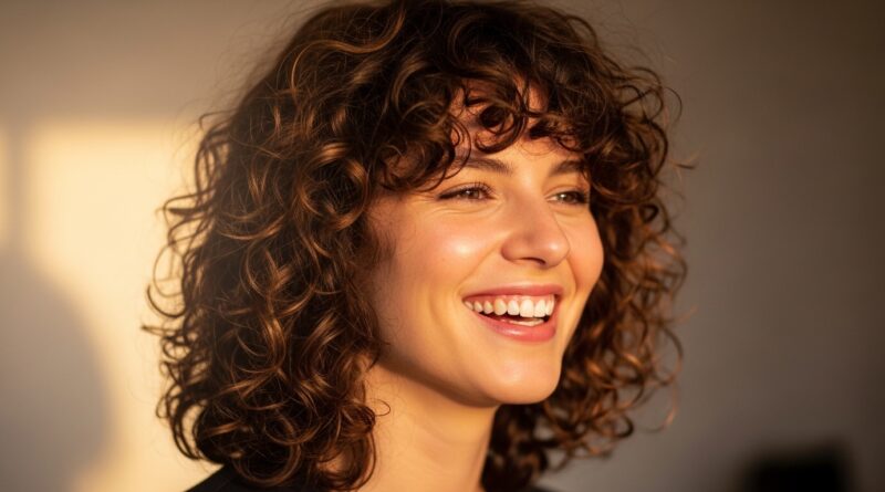 Read More[A woman with a short pixie cut that is just starting to grow out, smiling in soft morning light, wearing